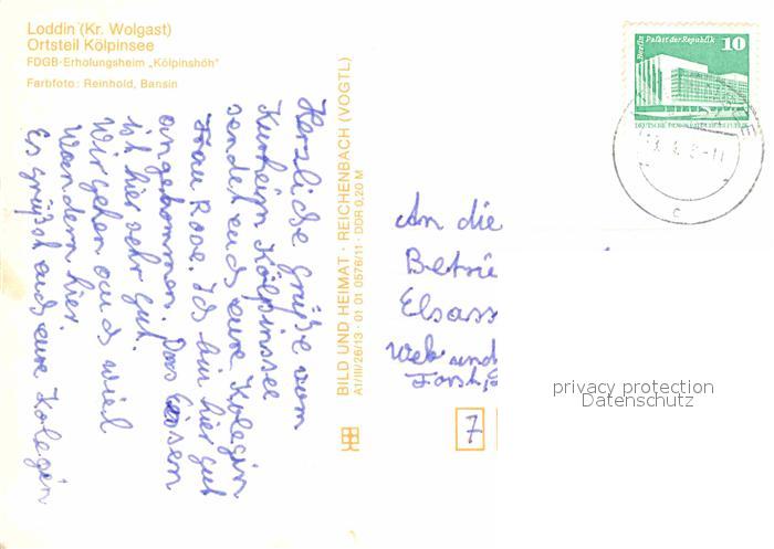 72621443 alte Postkarte Loddin Koelpinsee Erholungsheim Koelpinshoeh postalisch gelaufen Erhaltung siehe scans [LiesaD40] KatCode: 11110013059052