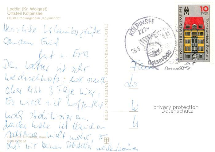 73064446 alte Postkarte Loddin Koelpinsee FDGB-Erholungsheim Koelpinshoeh postalisch gelaufen Erhaltung siehe scans [NatalD47] KatCode: 11110013059052