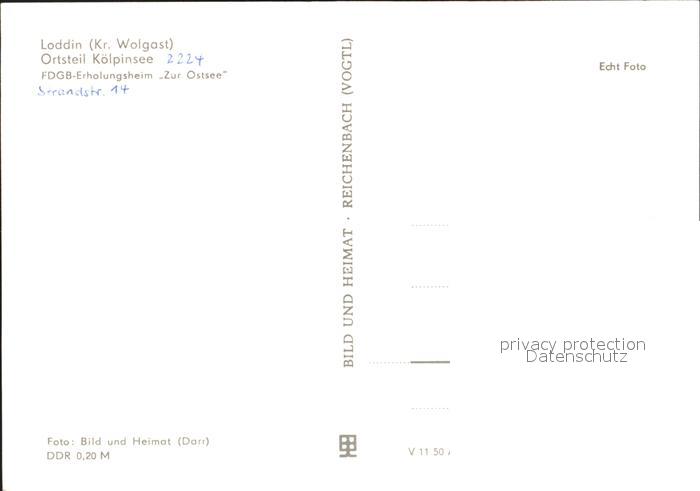 72335853 Loddin OT Koelpinsee FDGB Erholungsheim Zur Ostsee postalisch nicht gelaufen Erhaltung siehe scans KatCode: 11110013059052