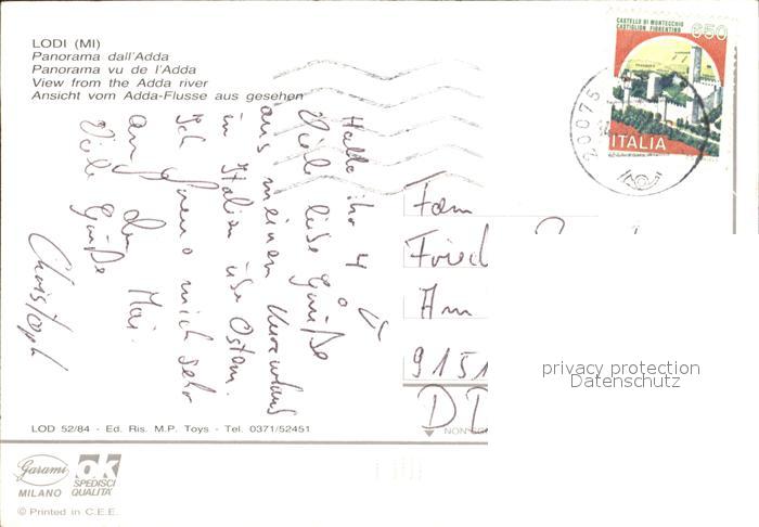 old postcard Lodi Lombardia Panorama dall’Adda postalisch gelaufen Erhaltung siehe scans