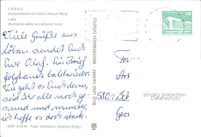 72136950 alte Postkarte Loebau Sachsen Aussichtsturm auf dem Loebauer Berg postalisch gelaufen Erhaltung siehe scans KatCode: 11110014286230