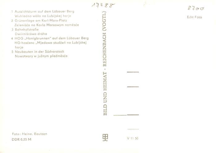 73911071 Loebau Sachsen Aussichtsturm Gruenanlage Karl Marx Platz Bahnhofstrasse HOG Honigbrunnen Neubauten Suedvorstadt postalisch nicht gelaufen Erhaltung siehe scans [FriedD77] KatCode: 11110014286230