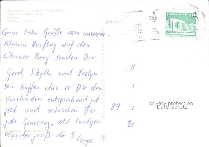 72310645 alte Postkarte Loebau Sachsen Aussichtsturm Rathaus postalisch gelaufen Erhaltung siehe scans KatCode: 11110014286230