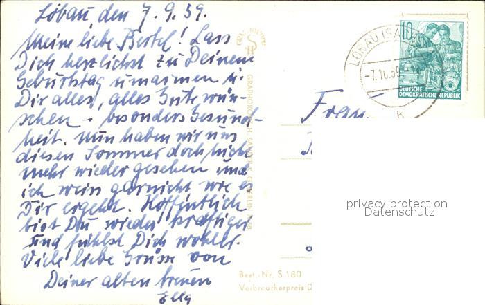 72401597 alte Postkarte Loebau Sachsen Blick vom Birkenweg am Berge postalisch gelaufen Erhaltung siehe scans KatCode: 11110014286230