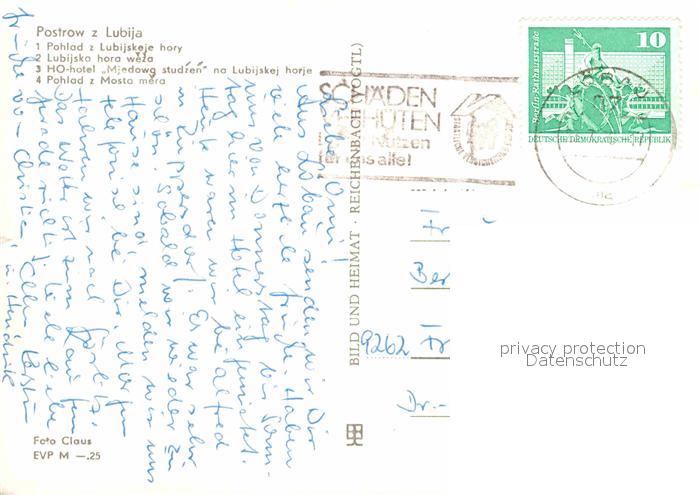 72641252 alte Postkarte Loebau Sachsen Blick vom Loebauer Berg Aussichtsturm HO Hotel Honigbrunnen Bruecke des Friedens Kirche Schloss postalisch gelaufen Erhaltung siehe scans [FriedD77] KatCode: 11110014286230