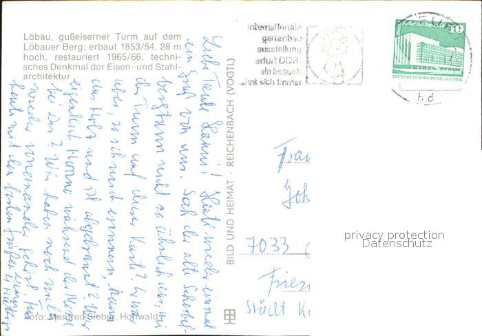 72532700 alte Postkarte Loebau Sachsen Gusseiserner Turm auf dem Loebauer Berg postalisch gelaufen Erhaltung siehe scans [WerneD78 kt116box] KatCode: 11110014286230