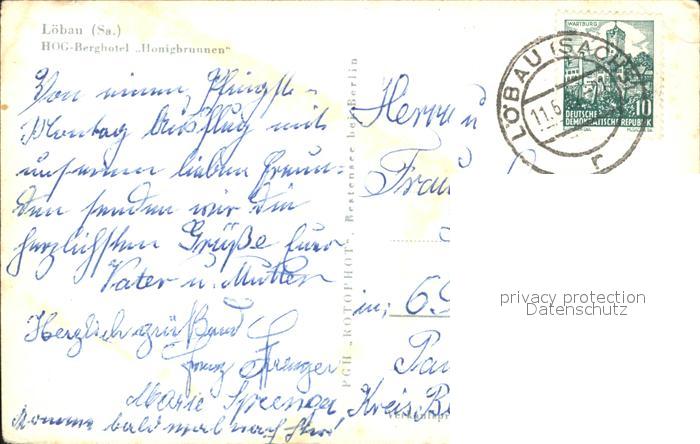 71924544 alte Postkarte Loebau Sachsen Hog Berghotel Honigbrunnen postalisch gelaufen Erhaltung siehe scans KatCode: 11110014286230