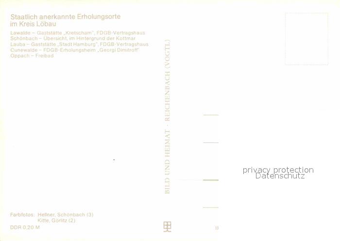 72623784 Loebau Sachsen Lawalde Gaststaette Kretscham Schoenbach FDGB Vertragshaus Lauba Gaststaette Stadt Hamburg FDGB Haus Cunewalde Oppach Freibad postalisch nicht gelaufen Erhaltung siehe scans [WerneD78] KatCode: 11110014286230