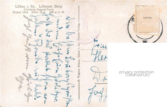 72974491 alte Postkarte Loebau Sachsen Loebauer Berg Friedrich August Turm postalisch gelaufen Erhaltung siehe scans [FriedD77] KatCode: 11110014286230
