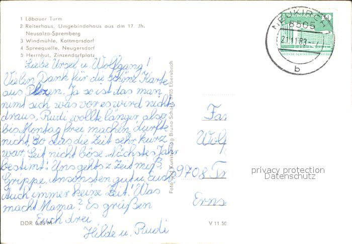 72386207 alte Postkarte Loebau Sachsen Loebauer Turm Reiterhaus Umgebindehaus Herrnhut postalisch gelaufen Erhaltung siehe scans KatCode: 11110014286230