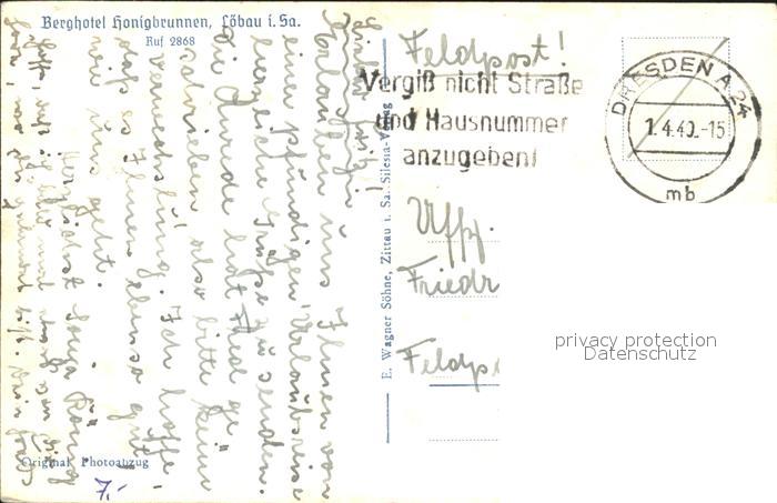 71861666 alte Postkarte Loebau Sachsen Panorama Blick vom Loebauer Berg Berghotel Honigbrunnen postalisch gelaufen Feldpost Erhaltung siehe scans KatCode: 11110014286230