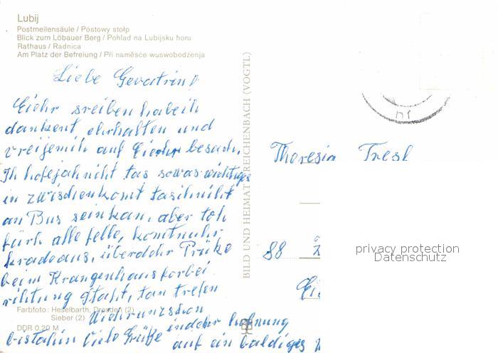 72616602 alte Postkarte Loebau Sachsen Postmeilensaeule Loebauer Berg Platz der Befreiung postalisch gelaufen Erhaltung siehe scans [FriedD77] KatCode: 11110014286230