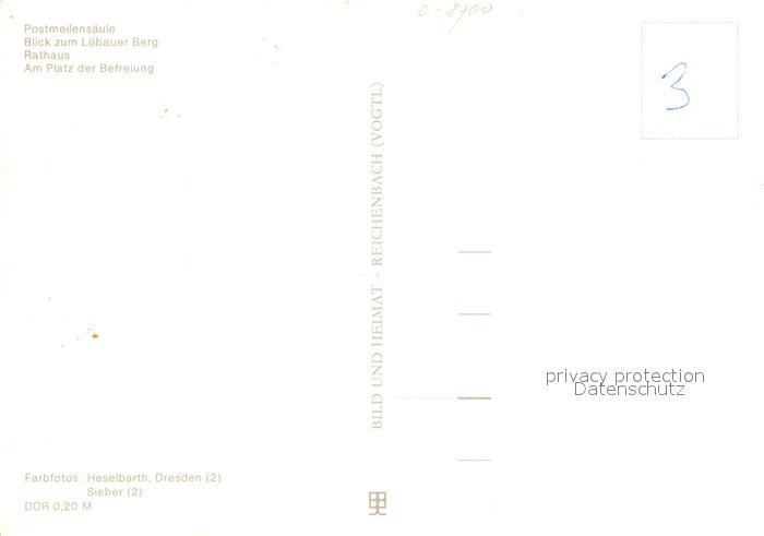 73039964 Loebau Sachsen Postmeilensaeule Loebauer Berg Rathaus Platz der Befreiung postalisch nicht gelaufen Erhaltung siehe scans [WerneD78] KatCode: 11110014286230