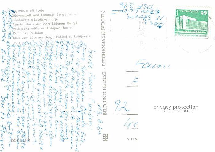 72641251 alte Postkarte Loebau Sachsen Suedvorstadt Loebauer Berg Aussichtsturm Rathaus postalisch gelaufen Erhaltung siehe scans [FriedD77] KatCode: 11110014286230