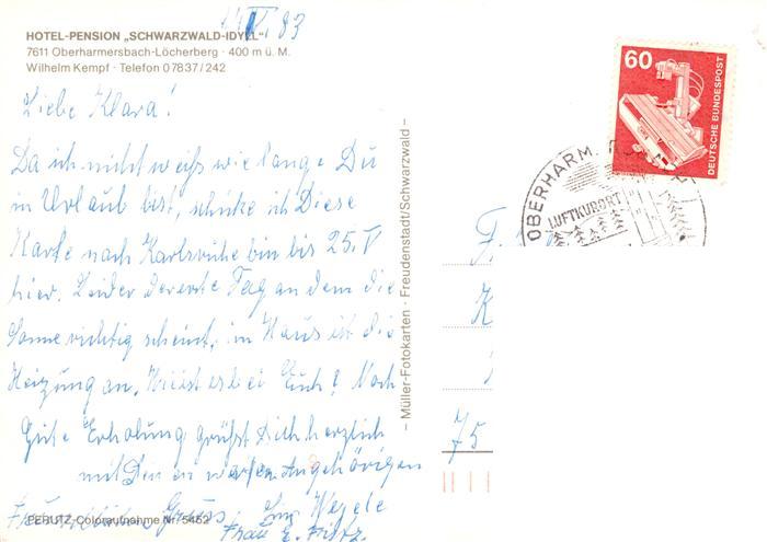 73928621 Loecherberg Oberharmersbach Hotel Pension Schwarzwald Idyll postalisch gelaufen Erhaltung siehe scans [FriedD77] alte Postkarte Frie Katcode 11110008317088