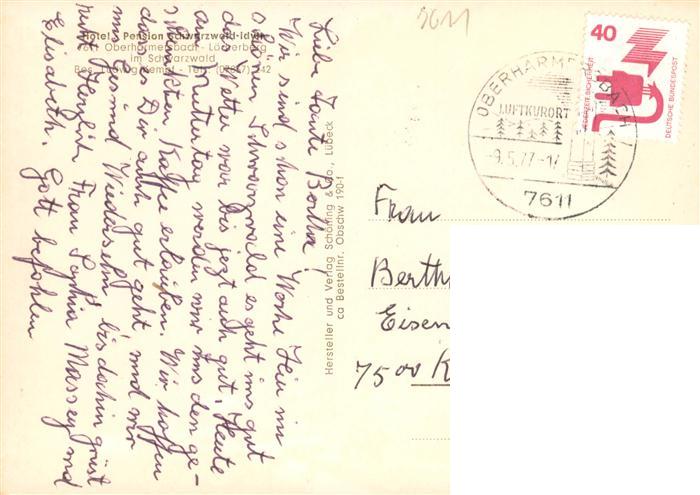 73928619 Loecherberg Oberharmersbach Hotel Pension Schwarzwald Idyll postalisch gelaufen Erhaltung siehe scans [FriedD77] alte Postkarte Frie Katcode 11110008317088