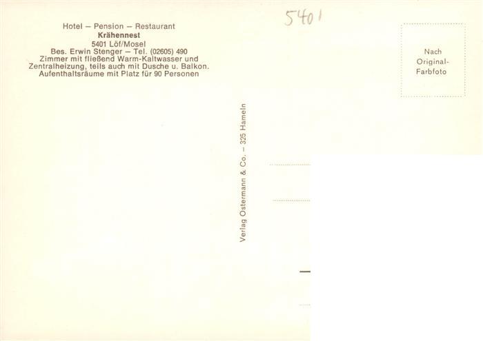 73874963 Loef Loef Mosel Hotel Pension Kraehennest postalisch nicht gelaufen Fliegeraufnahme Erhaltung siehe scans [FriedD77] KatCode: 11110007137214