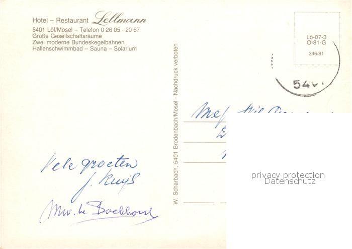 73845836 alte Postkarte Loef Loef Mosel Hotel Restaurant Sellmann postalisch gelaufen Erhaltung siehe scans [FriedD77] KatCode: 11110007137214