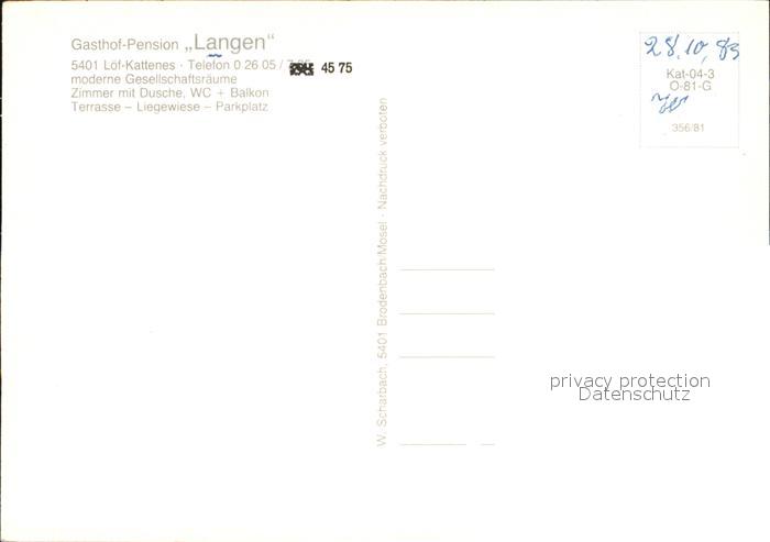 72612243 Loef Mosel Gasthos Pension Langen postalisch nicht gelaufen Erhaltung siehe scans [AndreD76] KatCode: 11110007137214