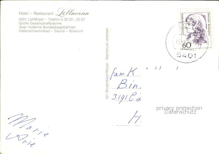 72512541 alte Postkarte Loef Mosel Hotel Restaurant Lellmann postalisch gelaufen Erhaltung siehe scans KatCode: 11110007137214
