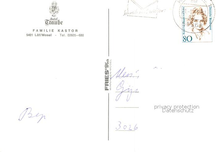 72930869 alte Postkarte Loef Mosel Hotel Traube Moselpartie postalisch gelaufen Erhaltung siehe scans [LiesaD40] KatCode: 11110007137214