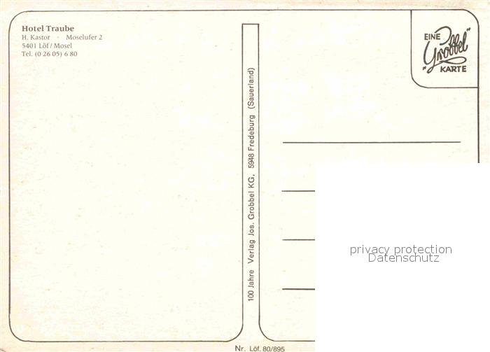 72856328 Loef Mosel Hotel Traube postalisch nicht gelaufen Erhaltung siehe scans [WerneD78] KatCode: 11110007137214