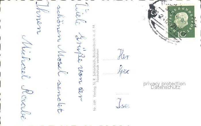 72402846 alte Postkarte Loef Mosel Panorama Moseltal Pfarrkirche Donnerloch Wasserfall Ehrenburg Burg Thurandt Weinprinzessin Weinanbaugebiet postalisch gelaufen Erhaltung siehe scans KatCode: 11110007137214