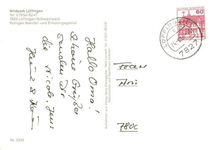73931364 alte Postkarte Loeffingen Kinderspielplatz Wildpark Loeffingen Rodelbahn Woelfe Hirsche Mufflons Kragenbaeren Luchs Steinboecke postalisch gelaufen Erhaltung siehe scans [WerneD78] KatCode: 11110008315070