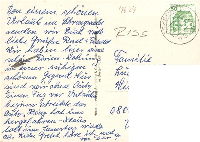 73931220 alte Postkarte Loeffingen Rathausplatz Maienlaender Tor Reh mit Kitz und Hirschen im Wildpark Festhalle Kirche Waldbad postalisch gelaufen Erhaltung siehe scans [WerneD78] KatCode: 11110008315070