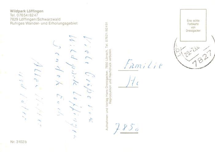 73904326 alte Postkarte Loeffingen Wildpark Loeffingen Restaurant Seepartie postalisch gelaufen Erhaltung siehe scans [FriedD77] KatCode: 11110008315070
