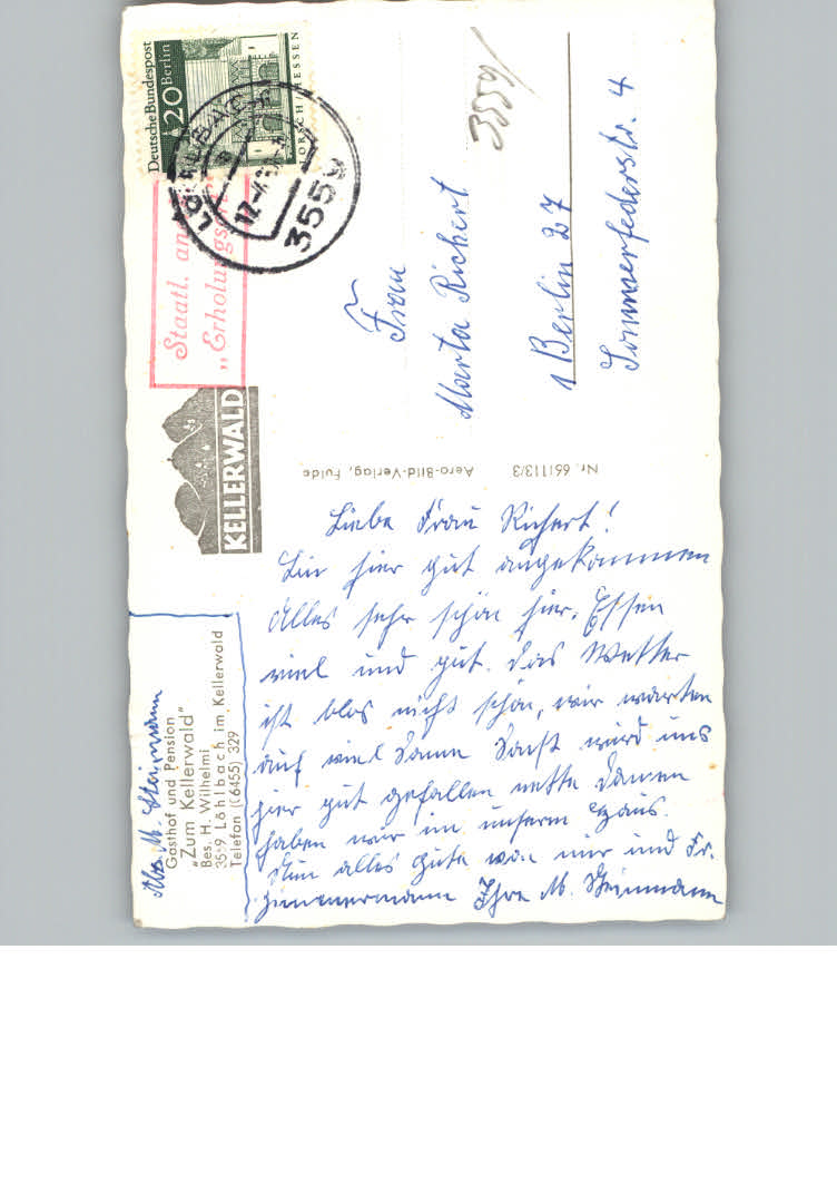 31132167 Loehlbach Gasthof zum Kellerwald postalisch nicht gelaufen KatCode: 11110006635013