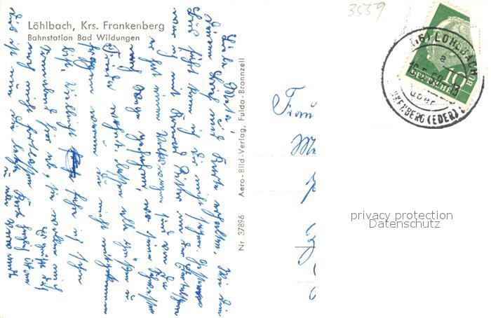 43366612 alte Postkarte Loehlbach Kellerwald Original Fliegeraufnahme postalisch gelaufen Erhaltung siehe scans [FriedD77] KatCode: 11110006635013