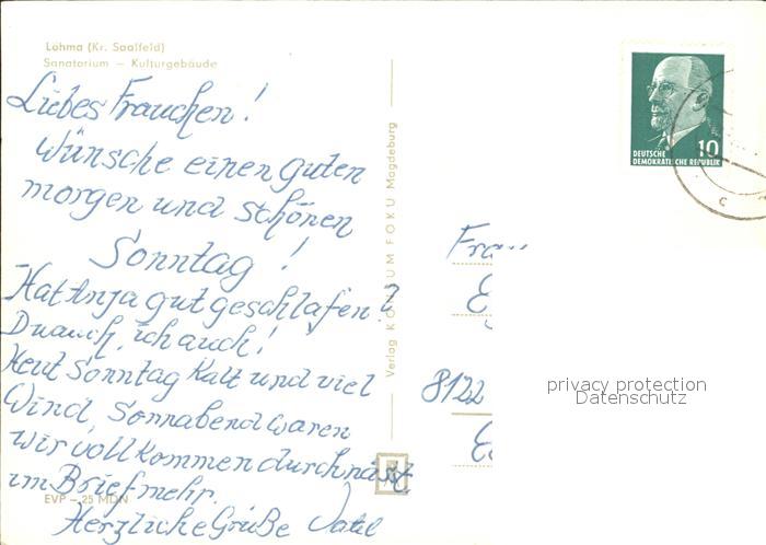 72053265 alte Postkarte Loehma Leutenberg Sanatorium Kulturgebaeude postalisch gelaufen KatCode: 11110016073106