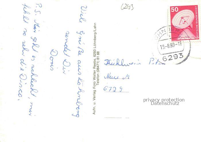 74155017 alte Postkarte Loehnberg Lahn Hessen Stadtpanorama Hauptstrasse Blick zur Burg postalisch gelaufen Erhaltung siehe scans [FriedD77] KatCode: 11110006533010