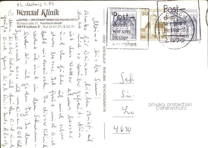72114000 alte Postkarte Loehne Werretal Klinik Foyer Hallenbad Gastraum postalisch gelaufen Erhaltung siehe scans KatCode: 11110005758024