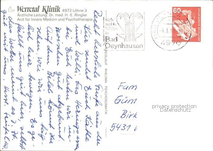 72138132 alte Postkarte Loehne Werretal Klinik Hallenbad postalisch gelaufen Erhaltung siehe scans KatCode: 11110005758024