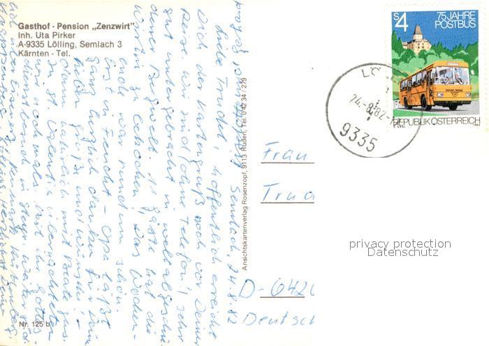 12975483 alte Postkarte Loelling Gasthof Zenzwirt postalisch gelaufen Erhaltung siehe scans [NatalD47] KatCode: 11390213020511