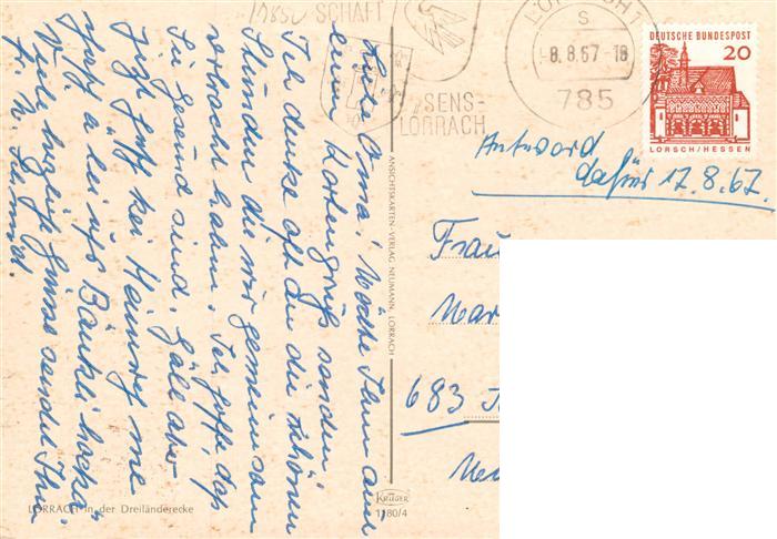 73948020 LoeRRACH Baden BW Blick ins Wiesental Alter Marktplatz Im Zentrum postalisch gelaufen Erhaltung siehe scans [WerneD78] alte Postkarte Wern Katcode 11110008336050