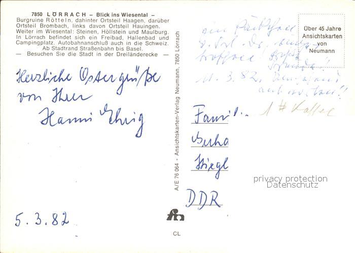 72420596 LoeRRACH Baden BW Blick ins Wiesental Burgruine Roetteln Fliegeraufnahme postalisch nicht gelaufen Erhaltung siehe scans KatCode: 11110008336050