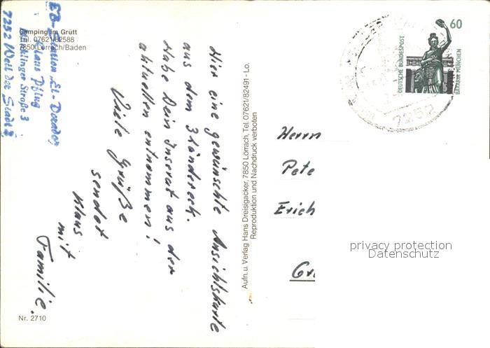 72061702 alte Postkarte LoeRRACH Baden BW Camping im Gruett postalisch gelaufen Erhaltung siehe scans KatCode: 11110008336050