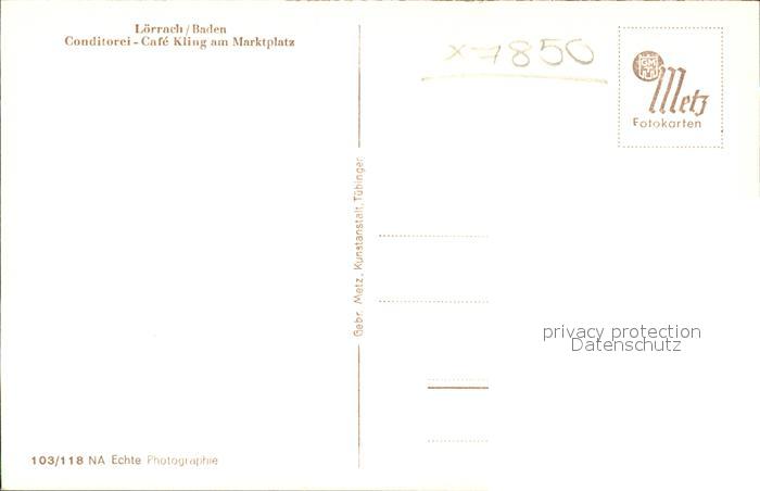 41815469 LoeRRACH Baden BW Conditorei Cafe Kling am Marktplatz postalisch nicht gelaufen Erhaltung siehe scans Alte Ansichtskarte Postkarte hz_F Katcode 11110008336050