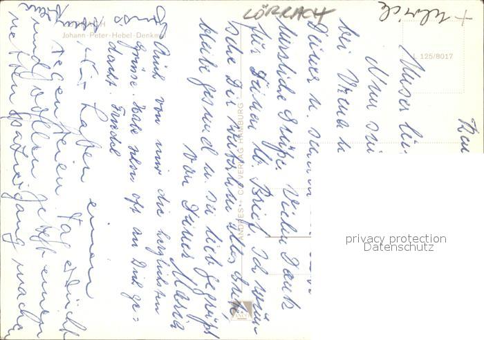 72049473 LoeRRACH Baden BW Johann Peter Hebel Denkmal postalisch nicht gelaufen Erhaltung siehe scans KatCode: 11110008336050