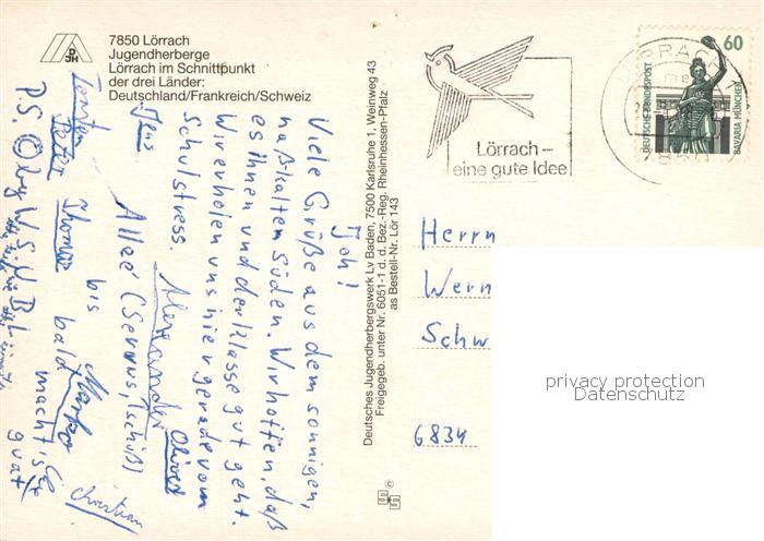 73779344 LoeRRACH Baden BW Jugendherberge Loerrach Fliegeraufnahme postalisch gelaufen Erhaltung siehe scans [WerneD78] alte Postkarte Wern Katcode 11110008336050