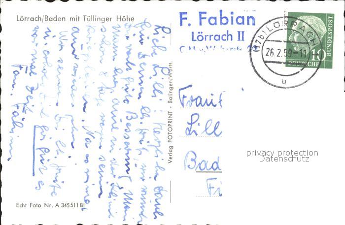 72140459 alte Postkarte LoeRRACH Baden BW mit Tuellinger Hoehe postalisch gelaufen Erhaltung siehe scans KatCode: 11110008336050