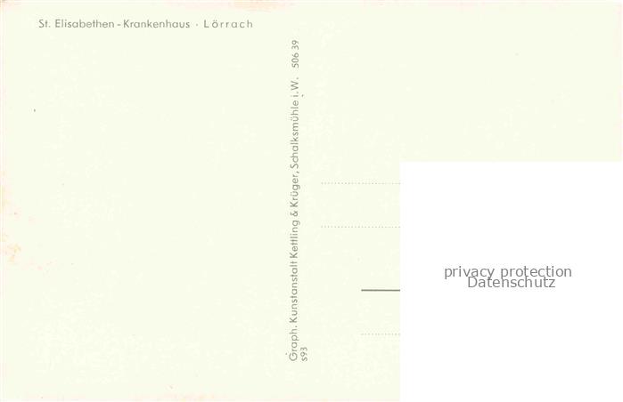 74058926 LoeRRACH Baden BW St Elisabethen Krankenhaus postalisch nicht gelaufen Erhaltung siehe scans [WerneD78] KatCode: 11110008336050