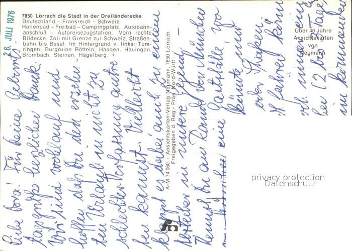 72577568 LoeRRACH Baden BW Stadt in der Dreilaenderecke Deutschland Frankreich Schweiz Fliegeraufnahme postalisch nicht gelaufen Erhaltung siehe scans [FriedD77] KatCode: 11110008336050