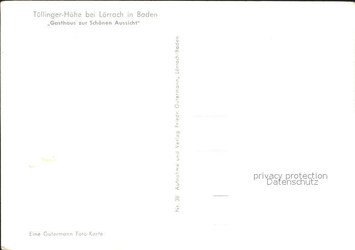72251290 LoeRRACH Baden BW Tuellinger Hoehe Gasthaus zur schoenen Aussicht postalisch nicht gelaufen Erhaltung siehe scans KatCode: 11110008336050
