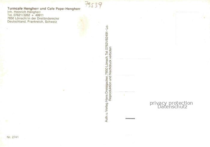 74137306 LoeRRACH Baden BW Turmcafe Hengherr Gaststube Pape Cafe Hengherr Burg Roetteln Bahnhofplatz postalisch nicht gelaufen Erhaltung siehe scans [WerneD78] Wern Katcode 11110008336050