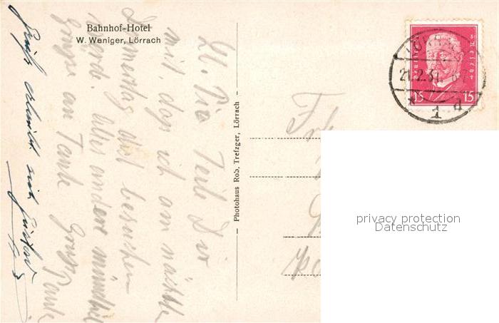 32980253 alte Postkarte Loerrach Bahnhofhotel postalisch gelaufen Erhaltung siehe scans [NatalD47] KatCode: 11110008336050