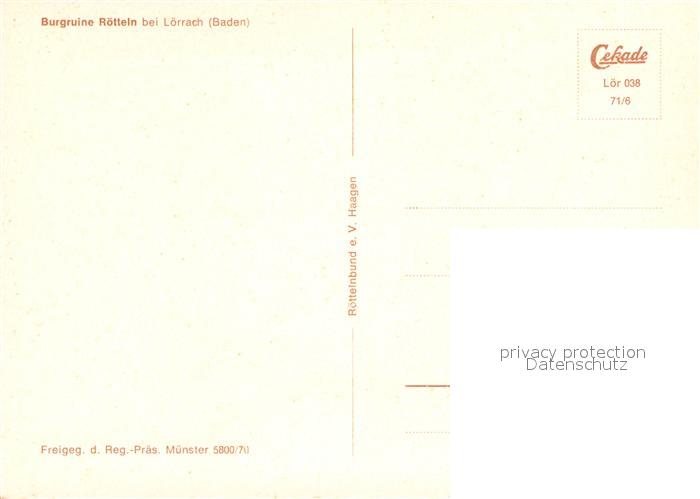 73003098 Loerrach Fliegeraufnahme mit Burgruine Roetteln postalisch nicht gelaufen Erhaltung siehe scans [WerneD78] KatCode: 11110008336050